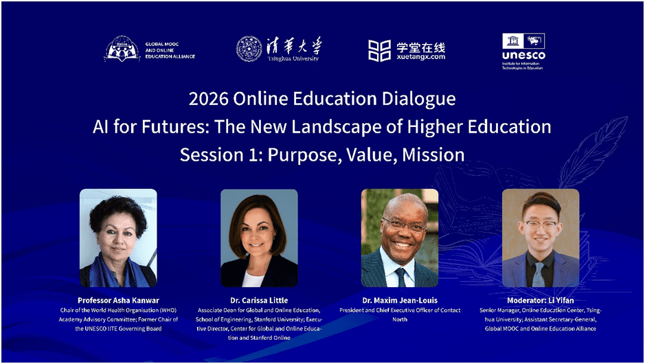 Co-hosted by the Global MOOC and Online Education Alliance (GMA), Tsinghua University, XuetangX, and UNESCO Institute for Information Technologies in Education (IITE), the first Online Education Dialogue (OED) session of 2026 was successfully held.